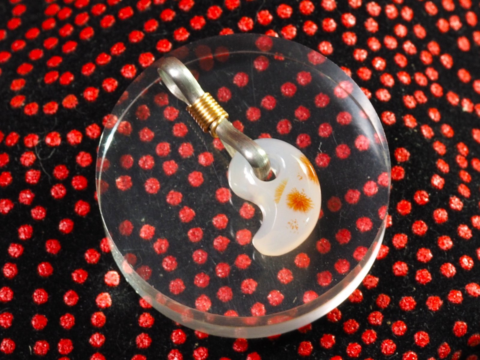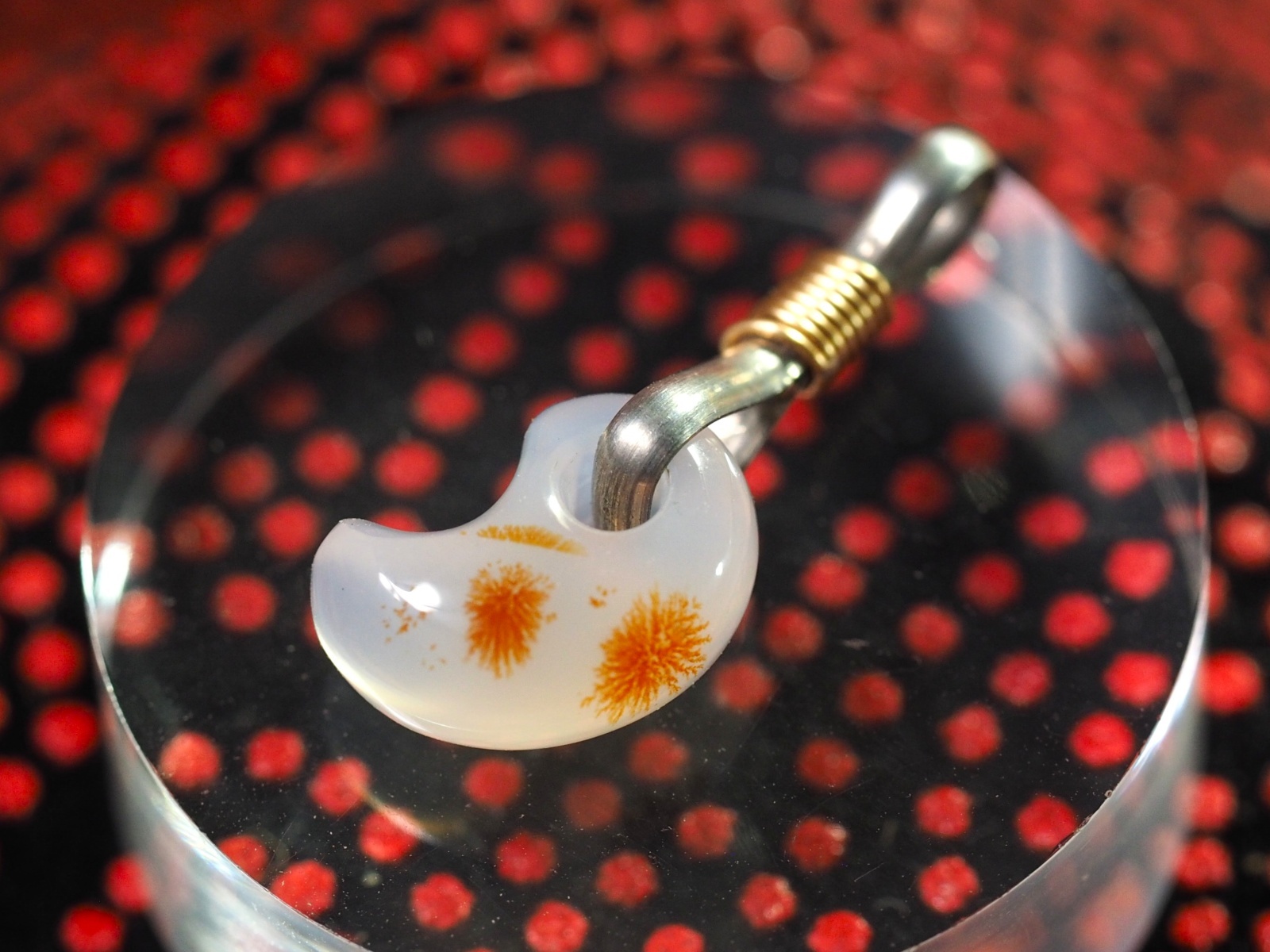 希少な天然赤メノウ・超小型勾玉「花火」(12mmサイズ・シルバー製八の字環つき・バレル研磨機不使用の手研磨!) [25m1101]