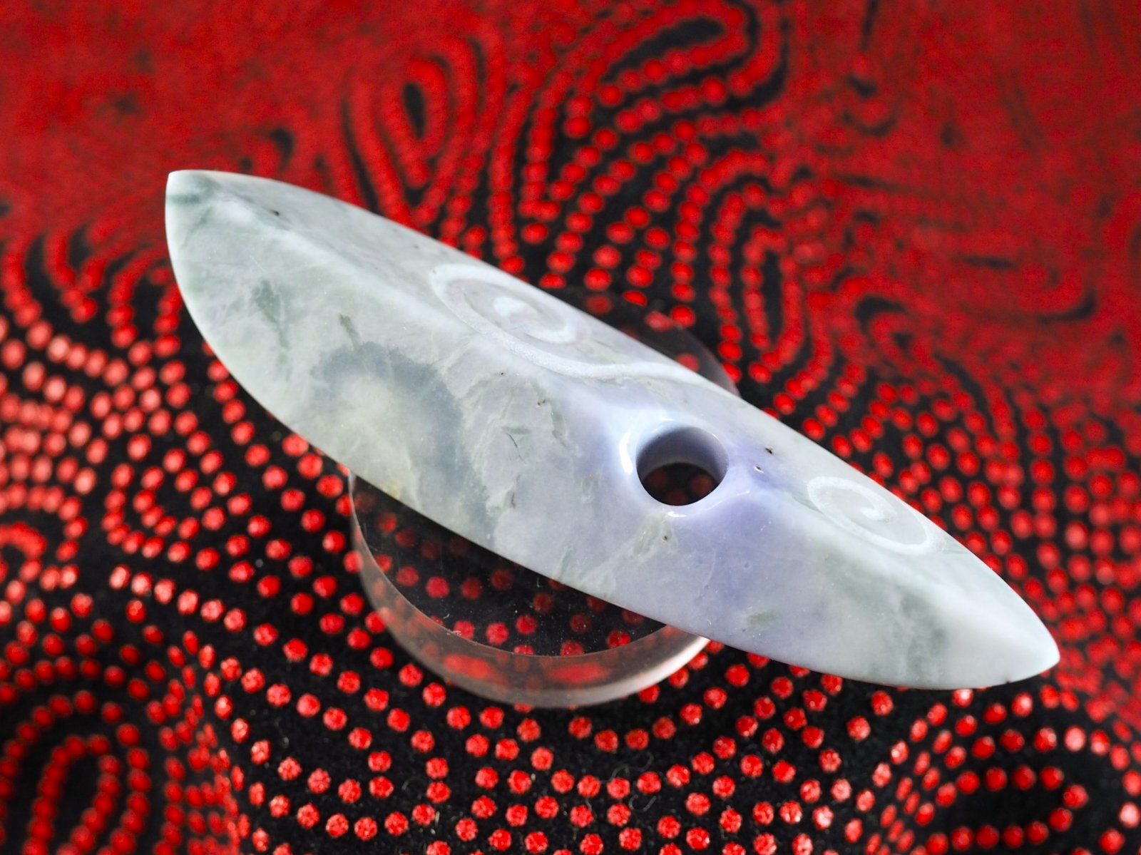 また出土品の多くは、大珠の中心から若干上に孔を開けてある事と、土壙墓に埋葬された男性の遺骨の腰付近からの出土例もあり、ペンダントではなく男性用の腰飾りや根付のようなものであったとする説もあります。