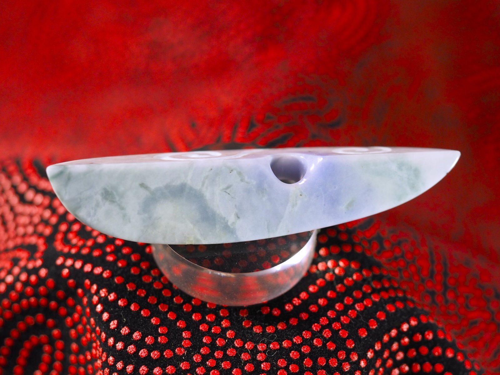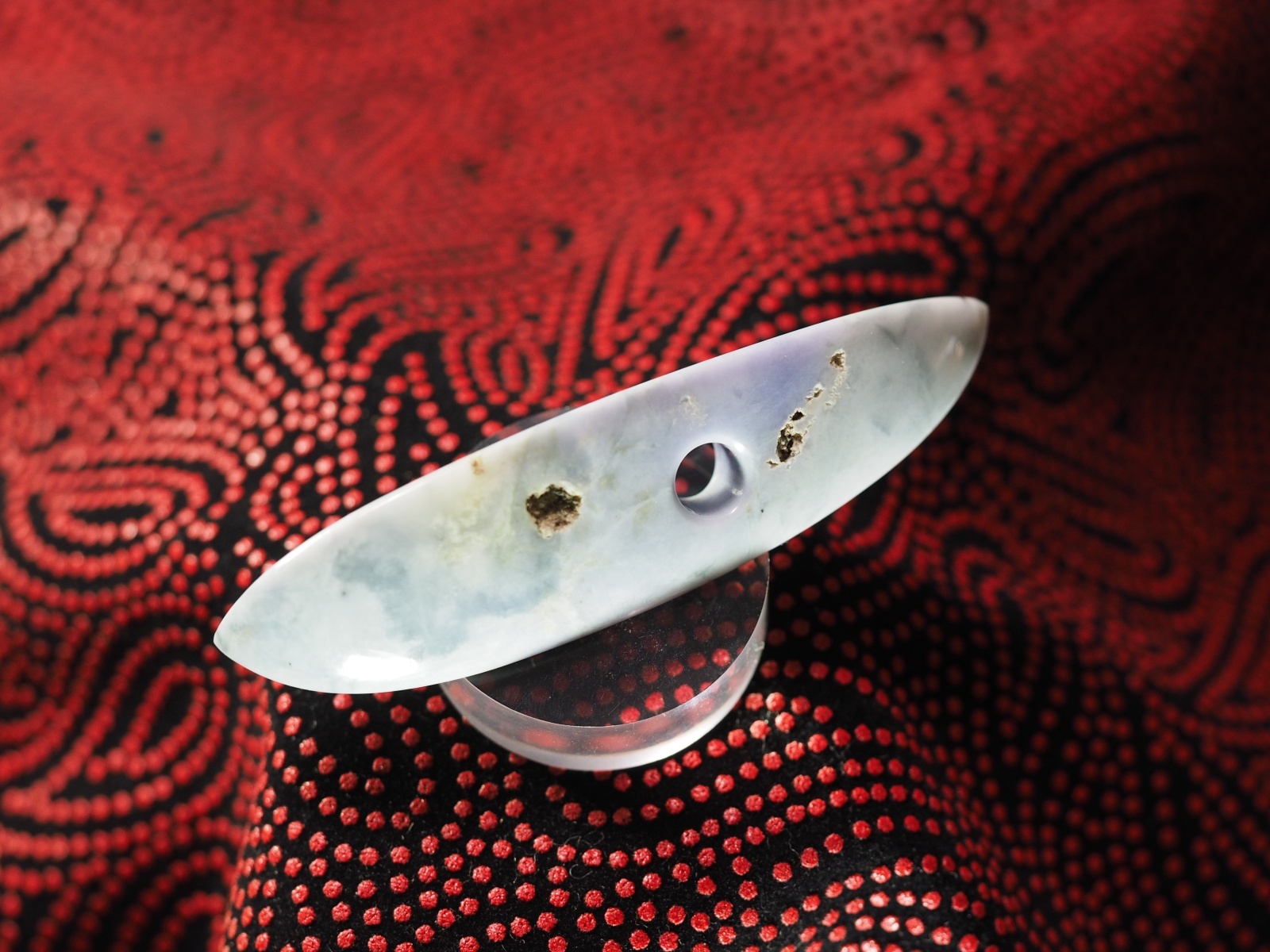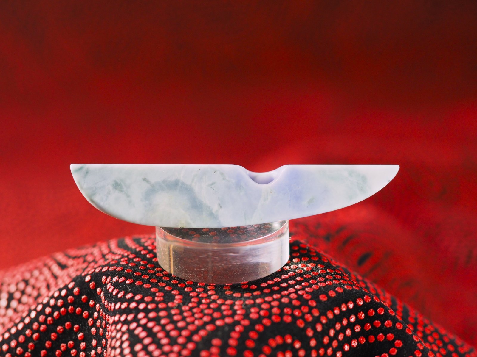 淡いスミレ色の地に濃い青紫と緑が発色した貴重なラベンダーヒスイ製です。
